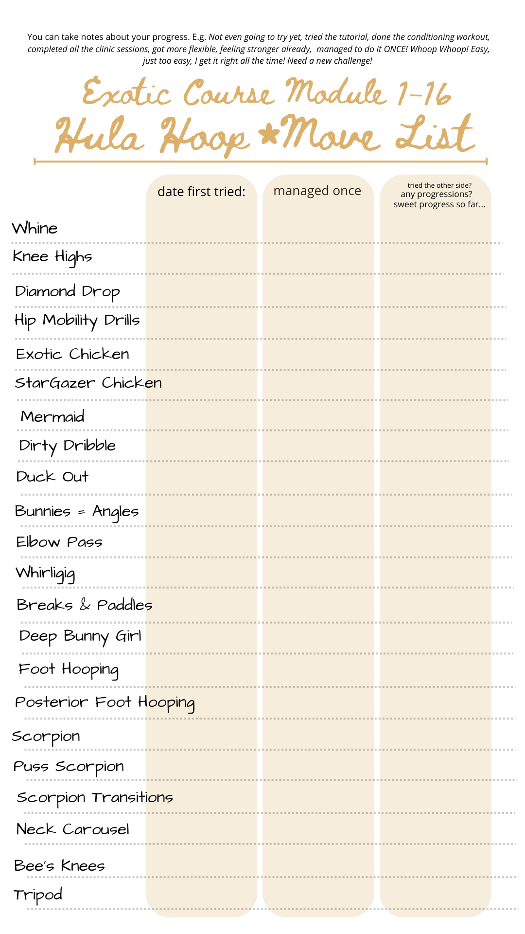 Exotic Hoop Dance Moves LIST - Module 1 to 16